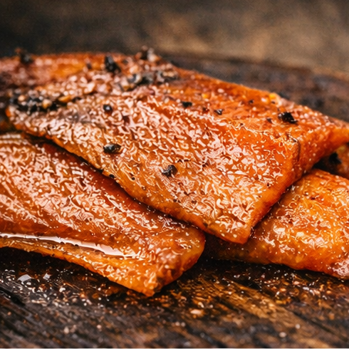 Lightly brined and slow-smoked over hickory, our trout delivers a delicate texture with a clean, refined finish.