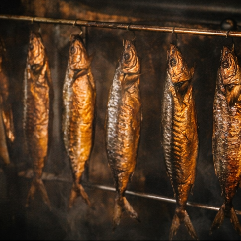 Bold and savoury, this Atlantic mackerel is traditionally smoked to enhance its natural richness and firm bite.